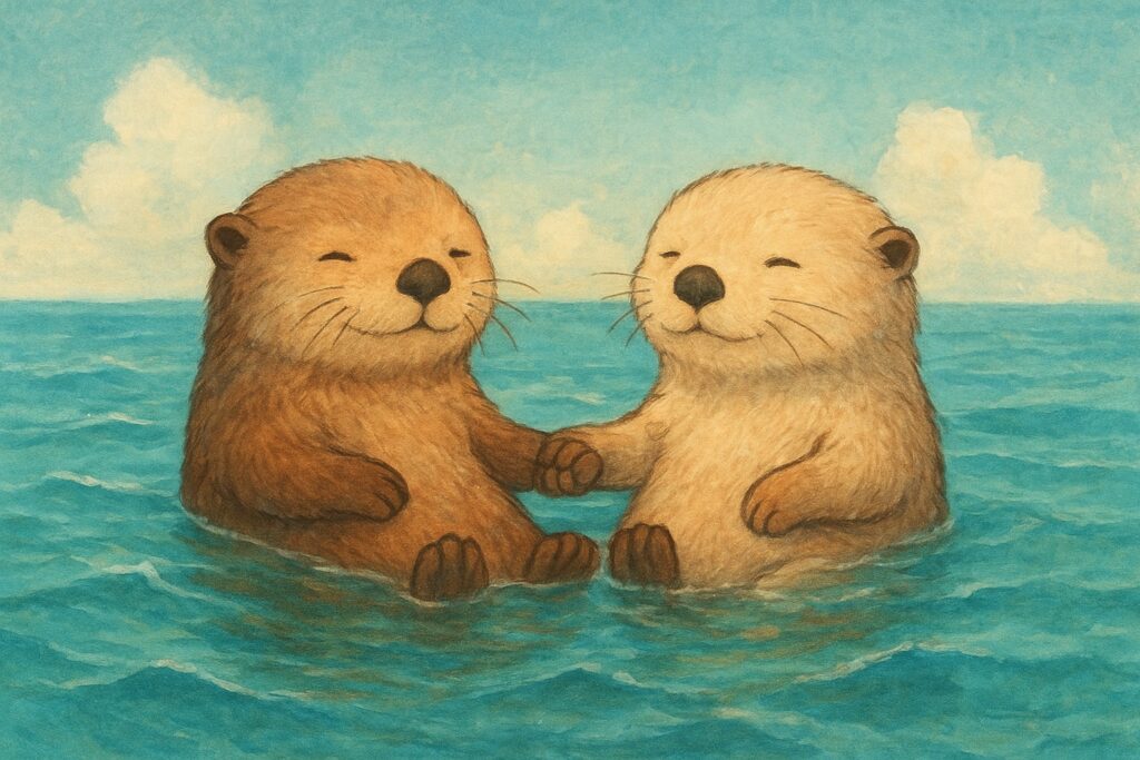 ラッコは、眠るときに仲間と手をつなぎます。 流されないように、離れ離れにならないように。 海の上で互いの体温を感じながら、安心して目を閉じるのです。