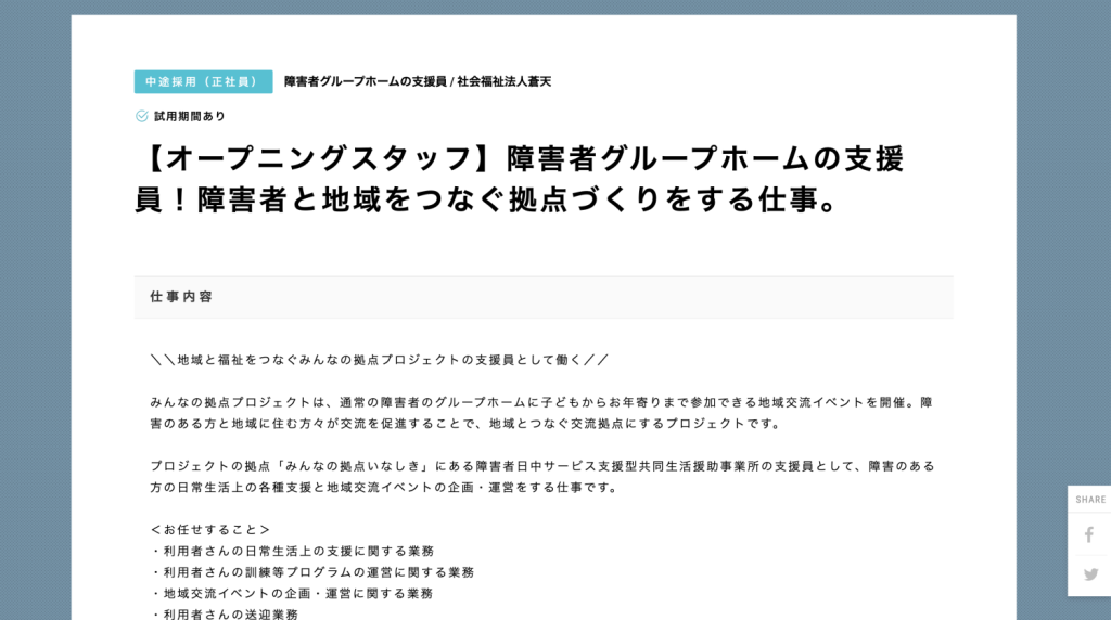 新規事業「みんなの拠点いなしき」開設に伴い、既存の事業所を含めて、求人情報ページを作成しました。
